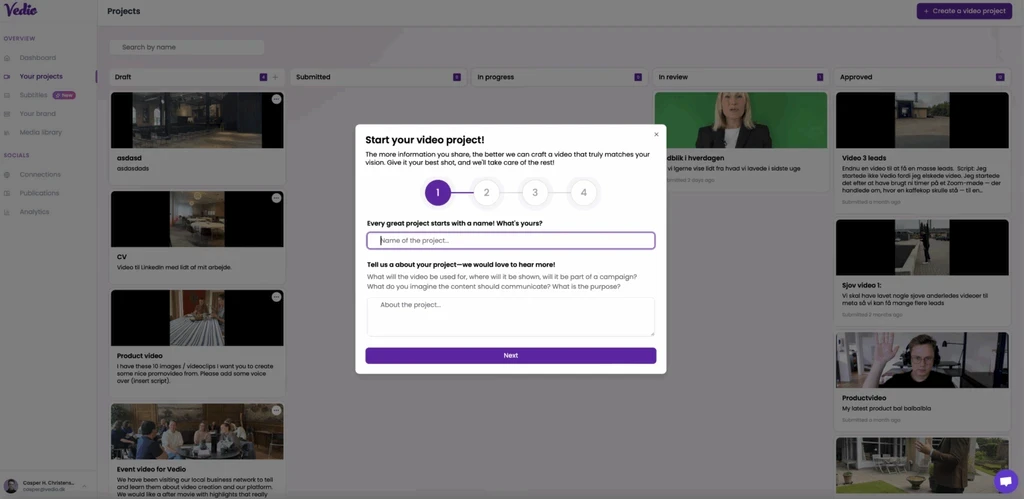 Vi har skabt en samlet platform, der samler hele dit videoflow ét sted. Fra upload af råmateriale og feedback til godkendelse og publicering.