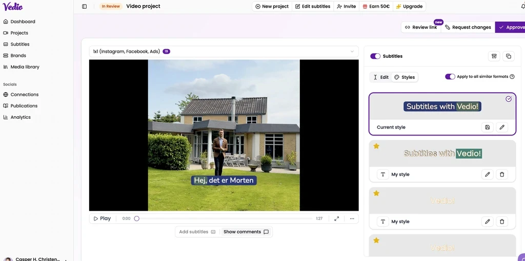 Tilpas farver, fonte, animationer og opsætning, så underteksterne matcher dit brand perfekt - og skaber mere engagement på tværs af platforme.