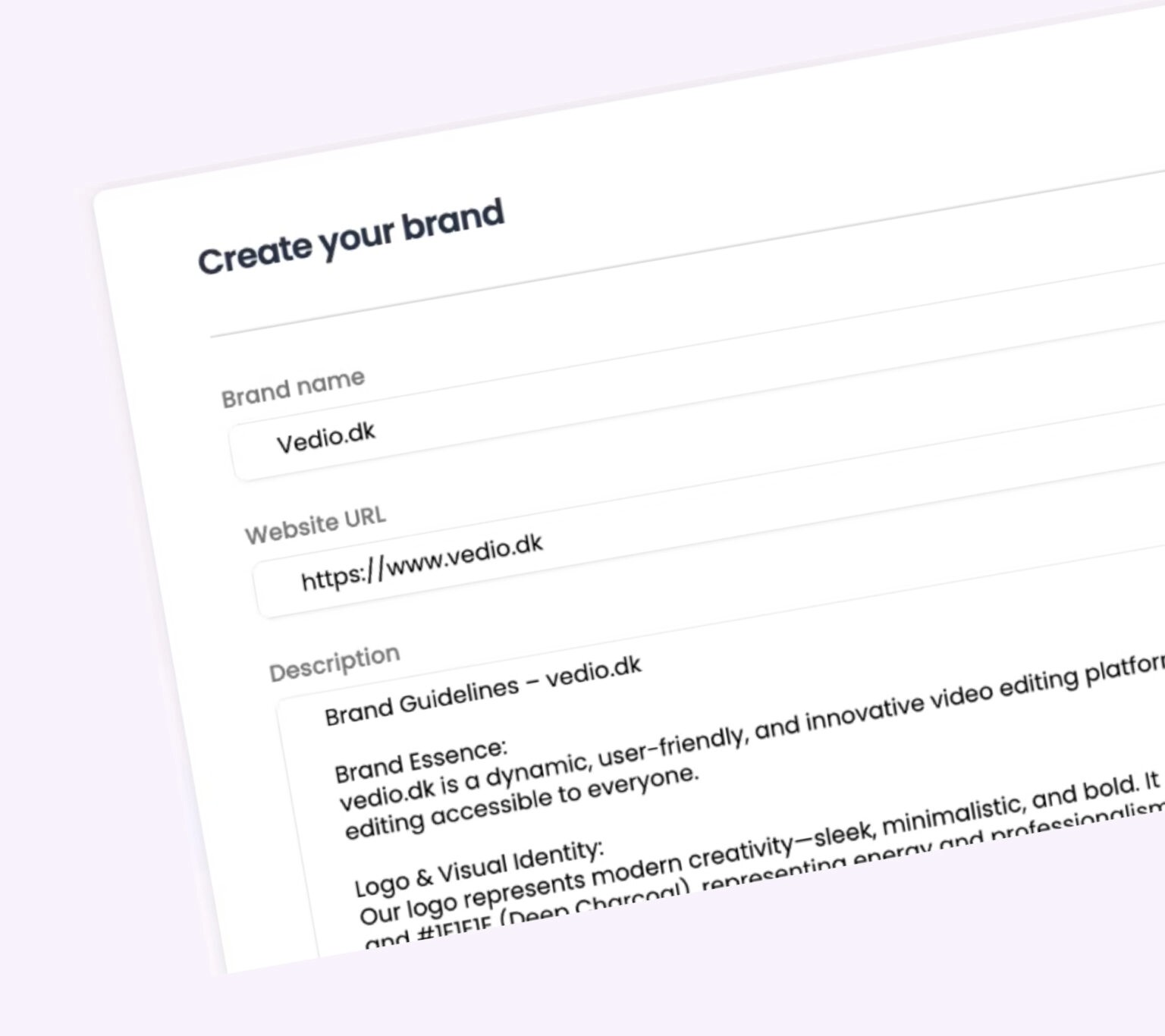 Skab en fuld brand-identitet i Vedio – med farver, fonte, templates og guidelines.