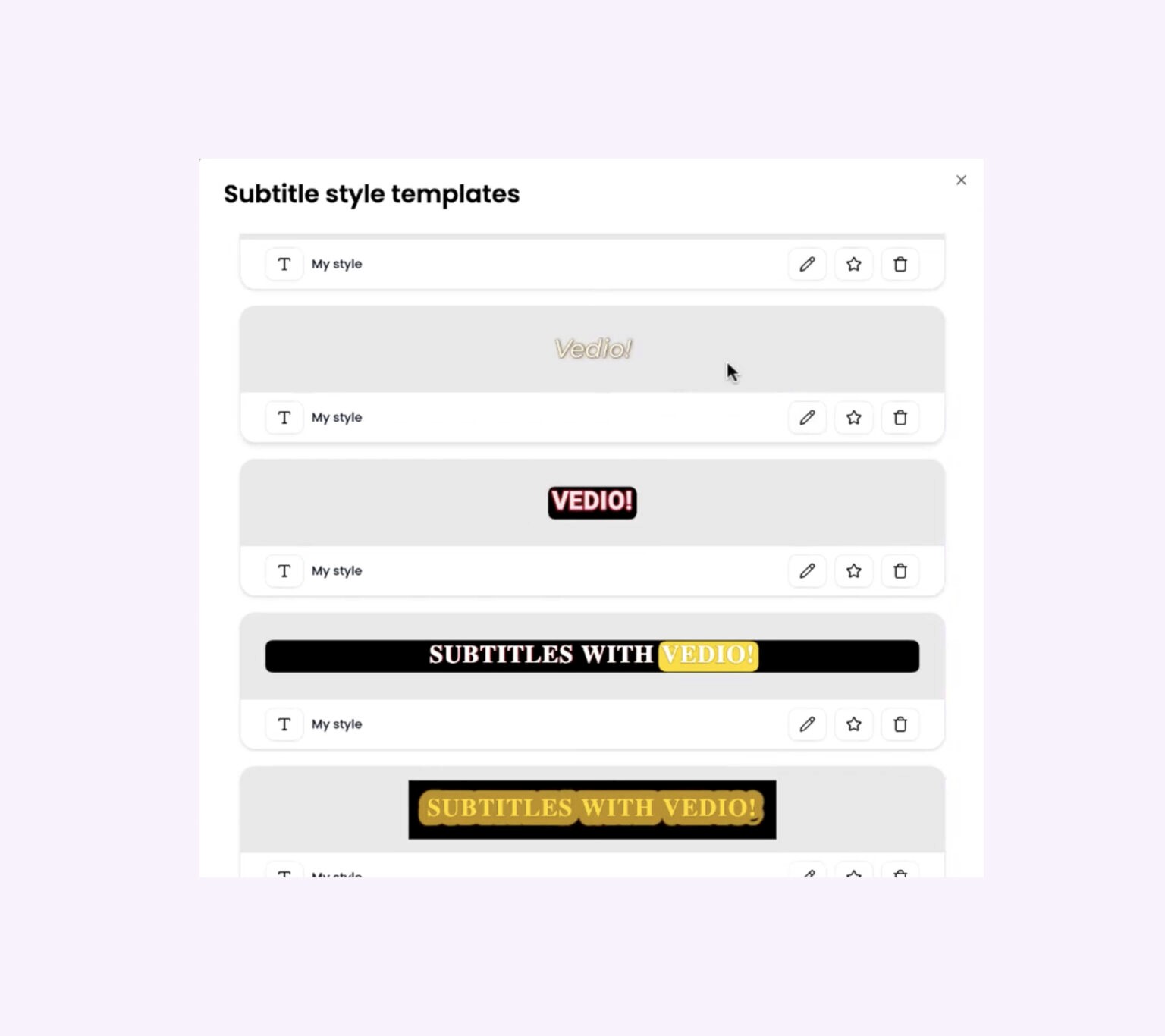 Alle projekter bruger automatisk jeres indstillinger, så stilen altid er konsistent på tværs af alle videoer.