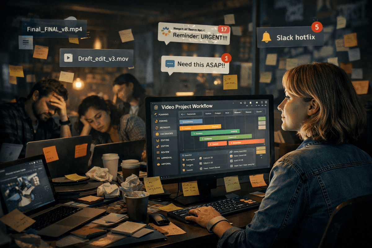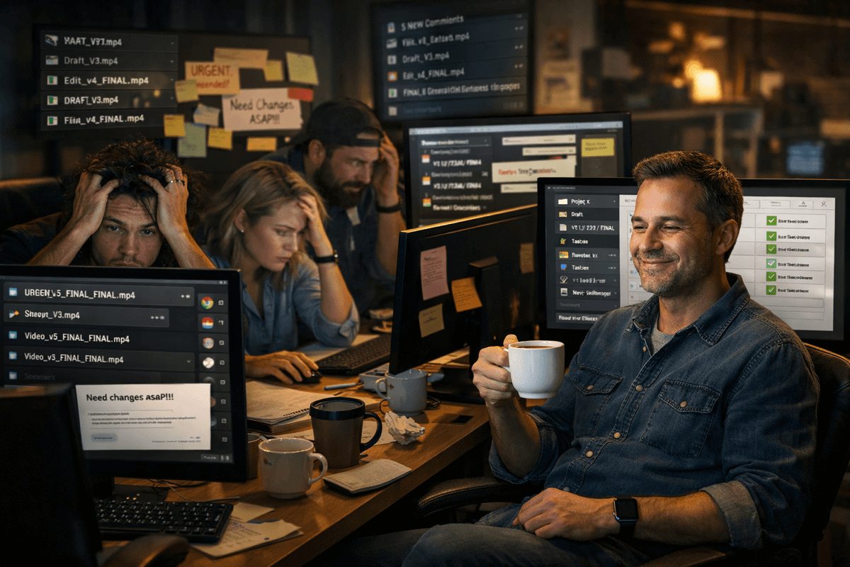 Ét enkelt, simpelt sted at opbevare dine videoer, råklip og færdigt content — organiseret, søgbart og delbart på tværs af teamet.